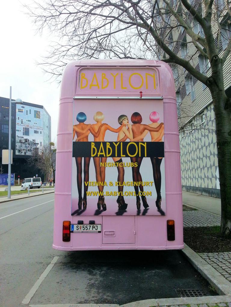 Oldtimer Bristol aus Salzburg als Werbebus in Wien beim Messezentrum 01/2018 gesehen.