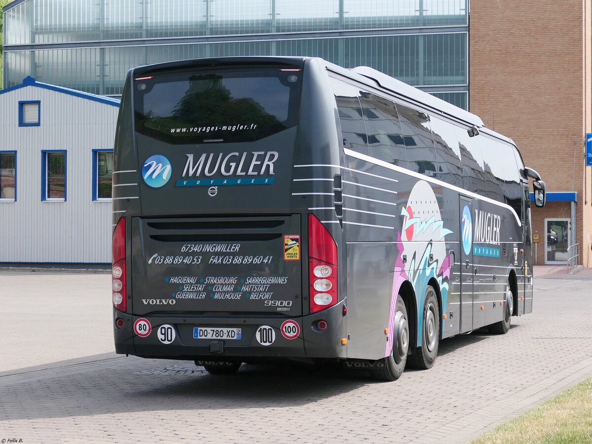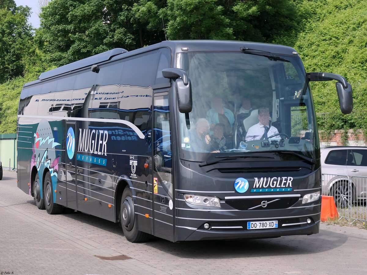 Volvo 9900 von Mugler aus Frankreich im Stadthafen Sassnitz.