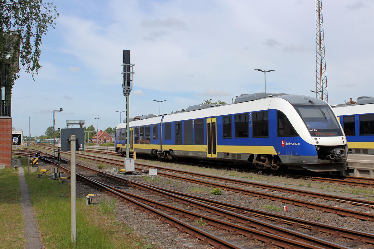 evb 648 197-3 ist Abfahrbereit und macht sich auf den Weg nach Bremerhaven. Bremervörde Bahnhof, 16.04.2022