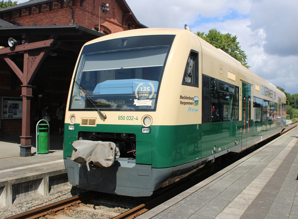 650 032-4 als PRE 74873 von Lauterbach Mole nach Bergen auf Rügen kurz vor der Ausfahrt am 29.07.2025 in Putbus
