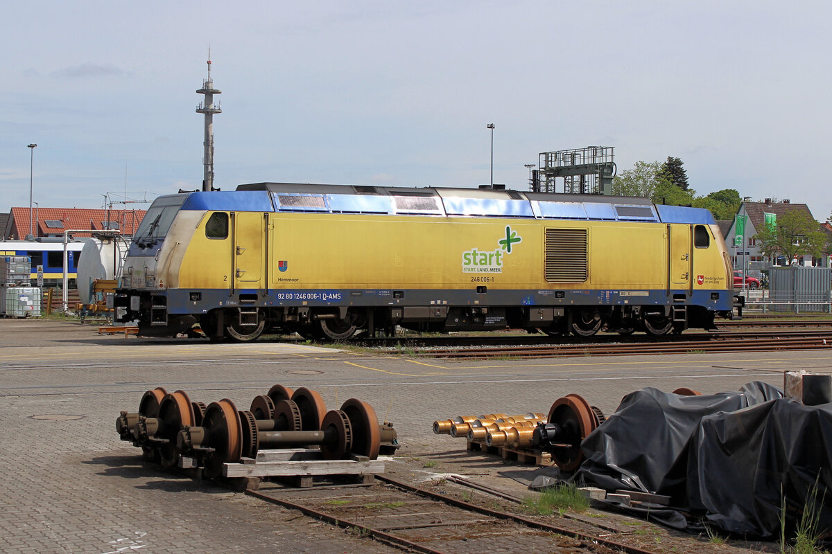 am Abend des 04.08.2017 traf 442 853 im Haltepunkt Rostock-Bramow auf 246 049-2
