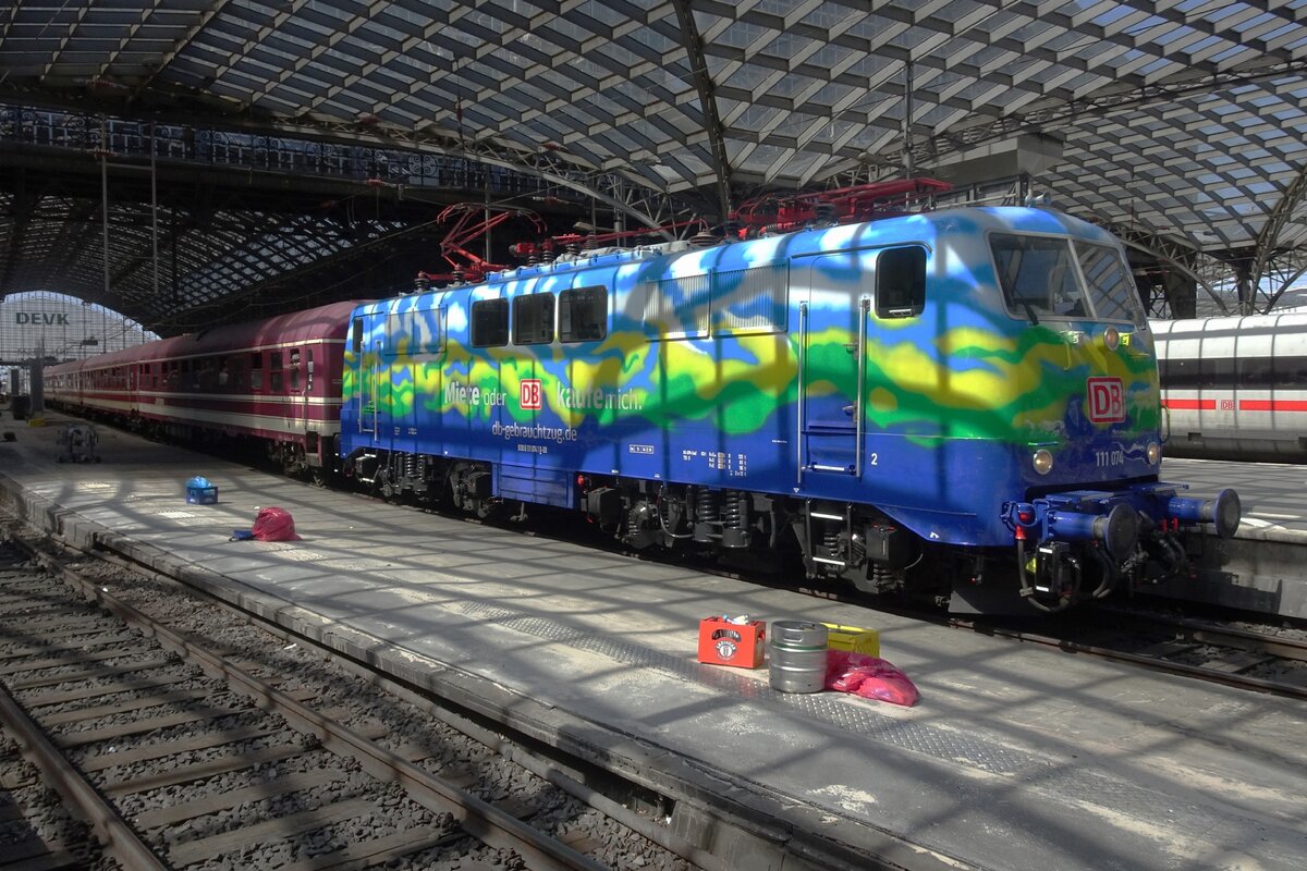 Am 21 Juni 2024 steht 111 095 mit deren CBB EM-Extrazug abfahrtbereit in Köln Hbf.