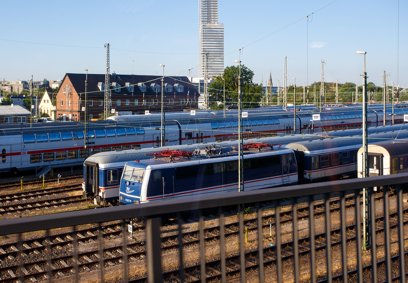 E11 112 schiebt am 23 Juli 2025 der RB37 durch Kaarst nach Krefeld Hbf.