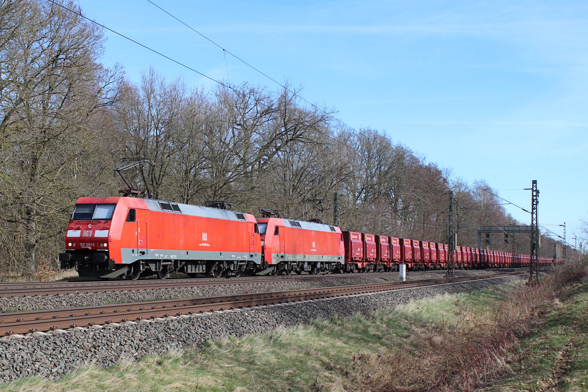 152 133-5 mit Seekisten am Haken, auf den Weg nach Hamburg. Tostedt - Dreihausen, 20.03.2026.