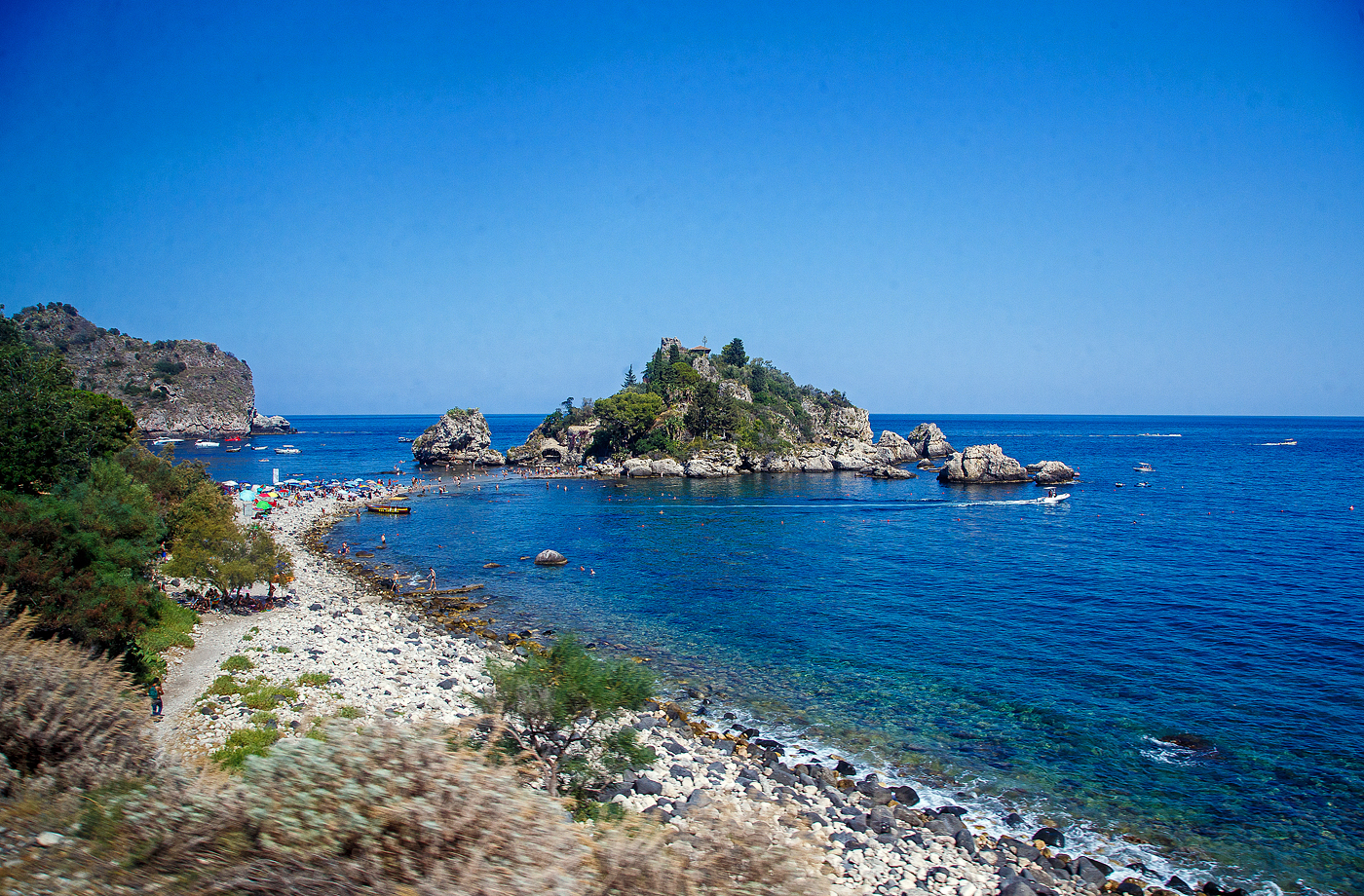 Eine Yacht unter Palmen, am 18.07.2022 in Riposto (Sizilien).