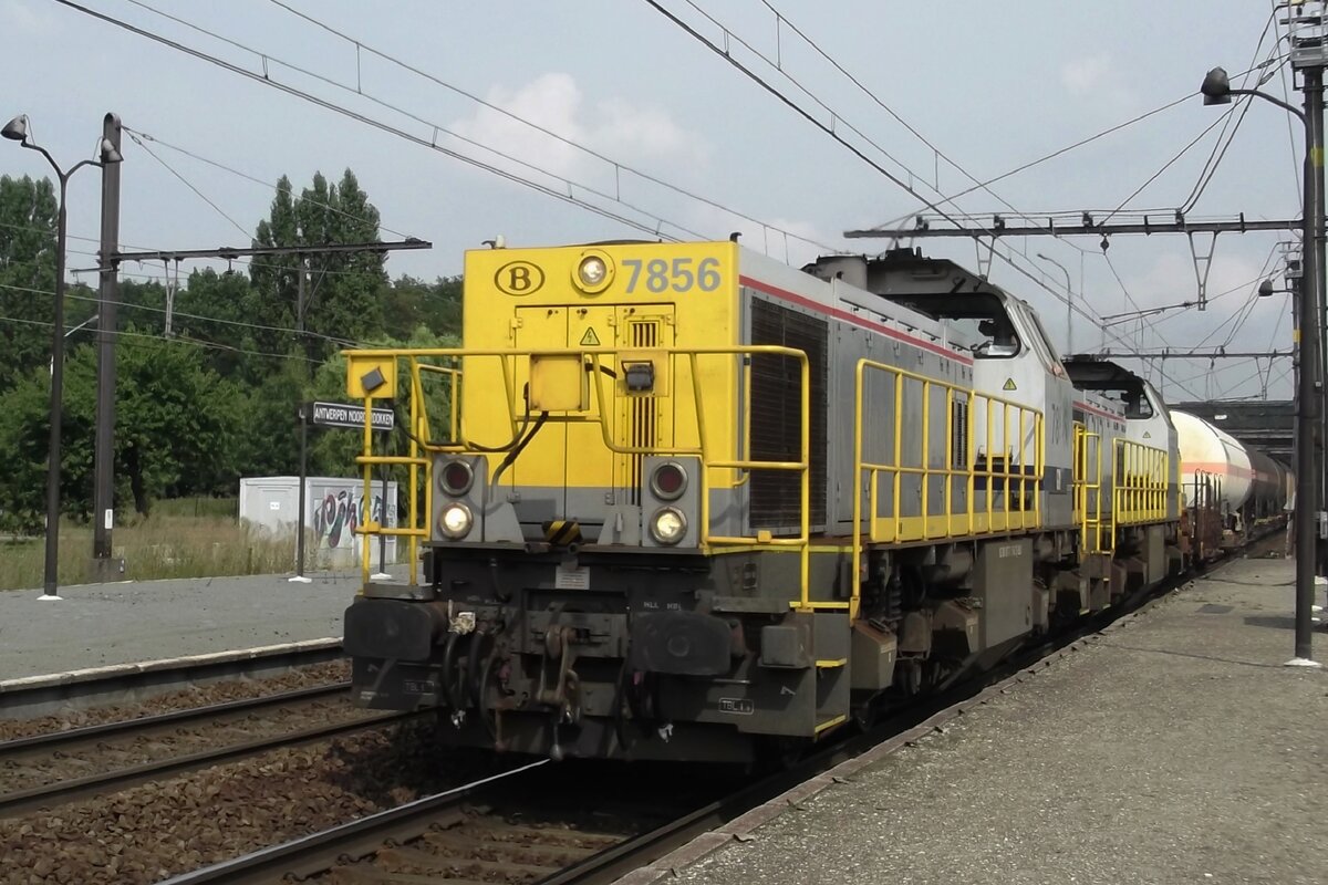 NMBS 7856 zieht ein Mischguterzug durch Antwerpen-Noorderdokken am 29 Augustus 2013.