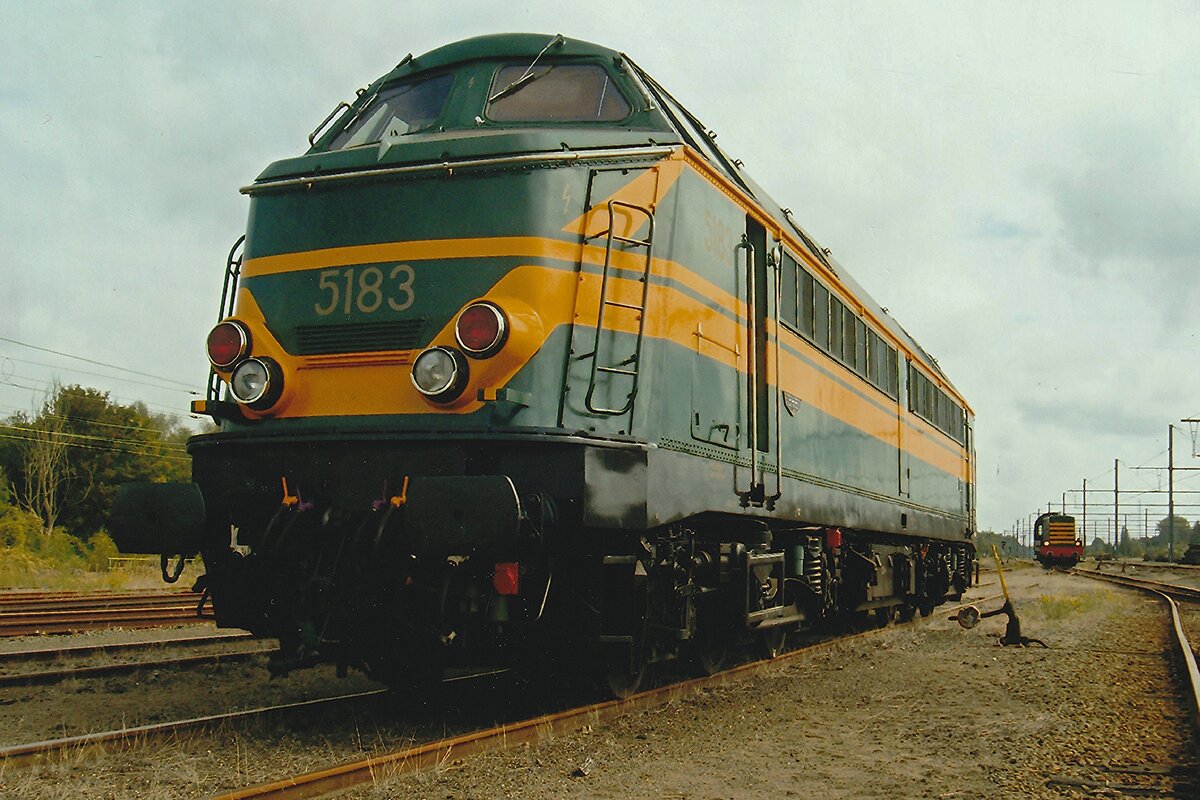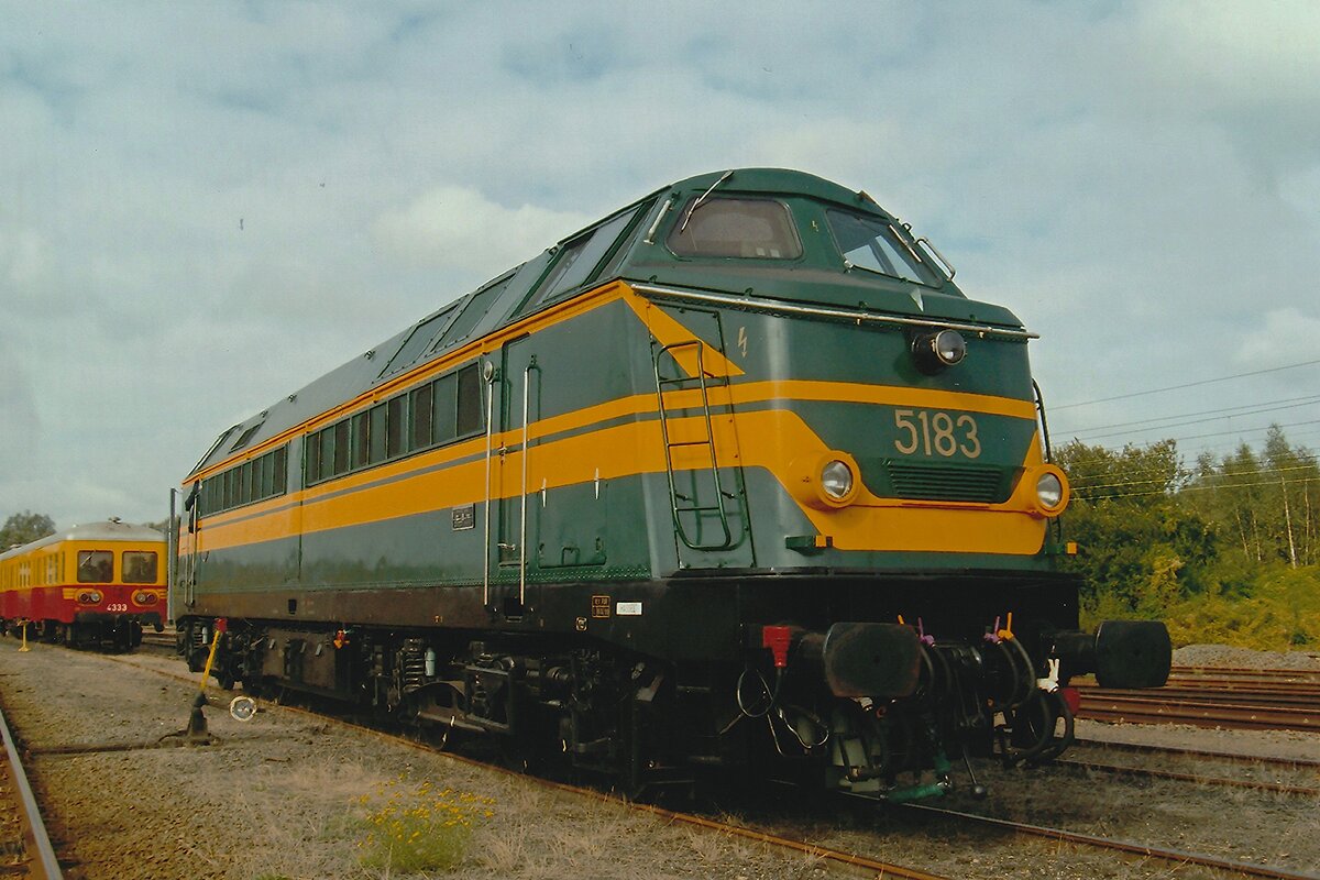 Leider existiert dieser maskerade nicht mehr. Ex-NMBS 5117 wurde in 2009 umgezaubert in 5001, eine Testdiesellok aud die 70er jahre, womit die NMBS versuchte, eine 140 km/h schnelle Diesellok bereit zu stellen. Pannenreihen und die vortschreitende Elektrifikation beschränkte die Ära des 5001s auf nür wenige Jahre und die 5001 wurde 1978 zurückgebaut. Die PFt-TSP baute 2009 deren 5117 in die 5001 Blauwe Vogel (Blauer Vogel) um, aber auch dieser Lok könnte sich nicht durchhalten und wurde Ende 2017 verschrottet. Hier steht der Quasi 5001 am 12 September 2009 ins Bw Saint-Ghislain.