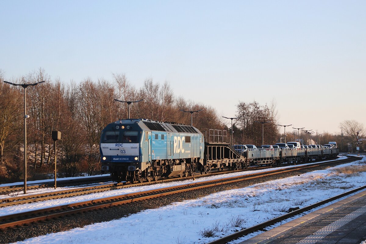 RDC DE 2700-07 steht verschmützt und wohl am 14 Februar 2026 in sonnigen Niebüll.