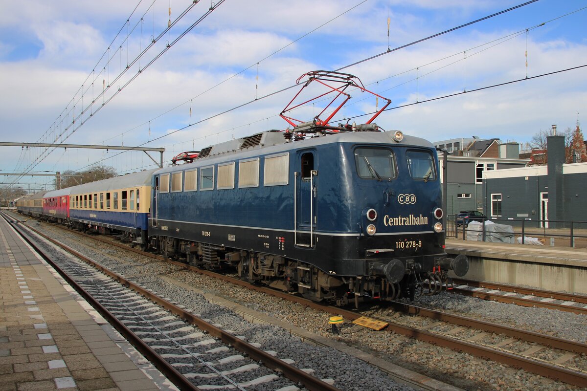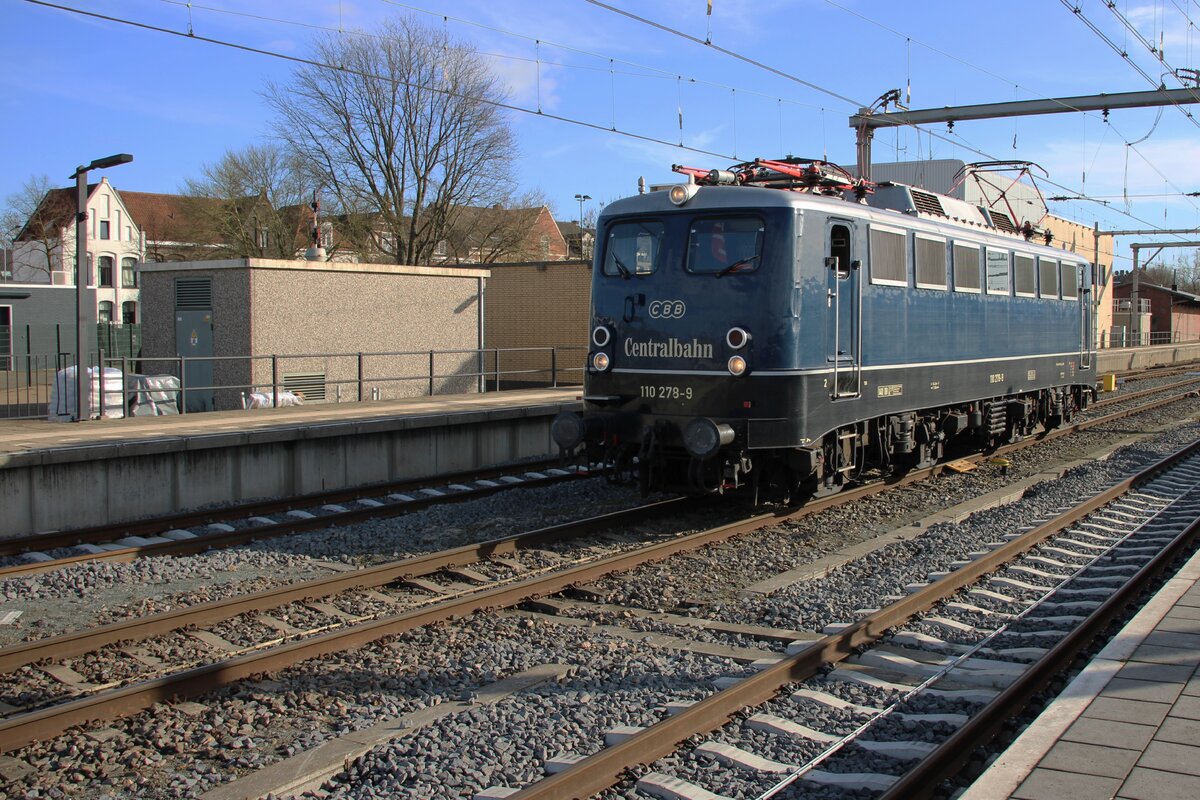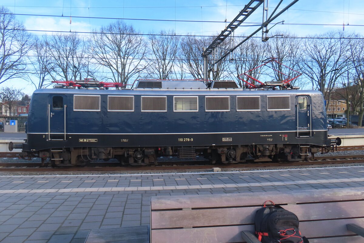 SVG: Bei der modernsten E-Lok die am 25. April 2015 im Museum der Eisenbahn Erlebniswelt Horb am Neckar aufgenommen werden konnte, handelt es sich um die 110 281 (1963) von DB Regio als Leihgabe.