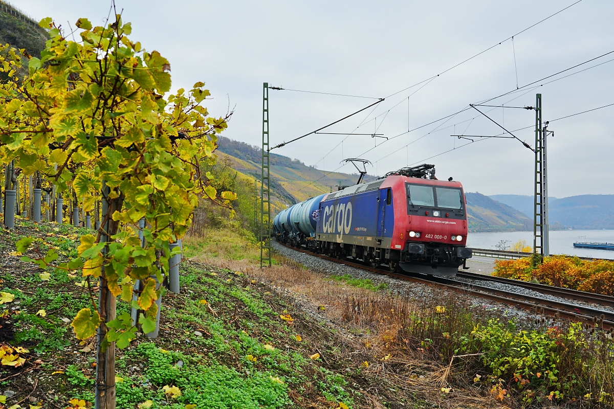 Der auf der vorherigen Aufnahme vom 16.11.2024 gezeigte Vectron von SBB-Cargo am Bopparder Hamm nochmals etwas vergrössert