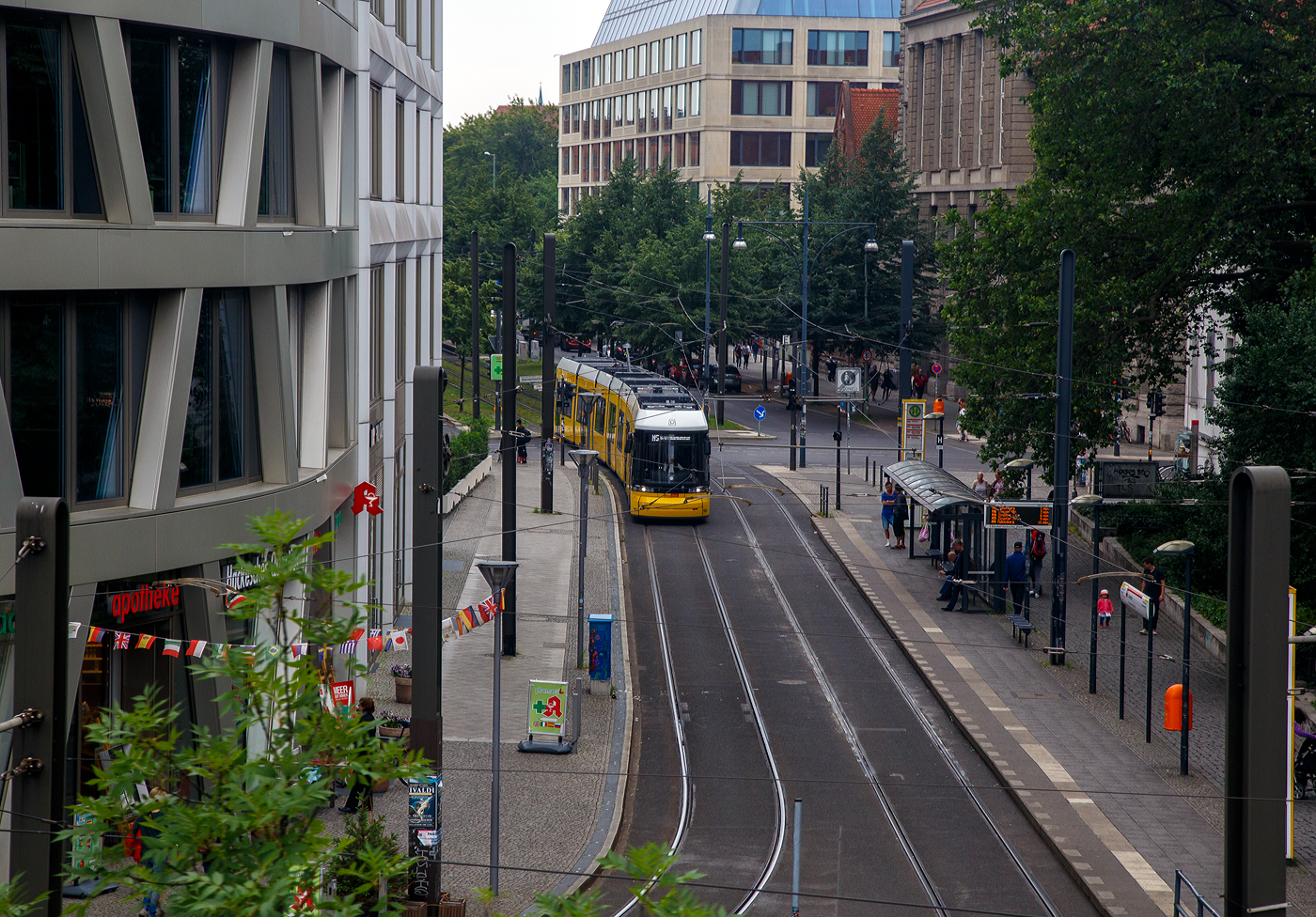 BVG: SOLO-TATRA Tramzug auf der Linie 21 in Berlin im Juni 2004. Diese bereits seit mehreren Jahren ausrangierten speziellen Fahrzeugtypen verdienten ihr letztes Gnadenbrot in Schweden bei der Strassenbahn Norrköping.