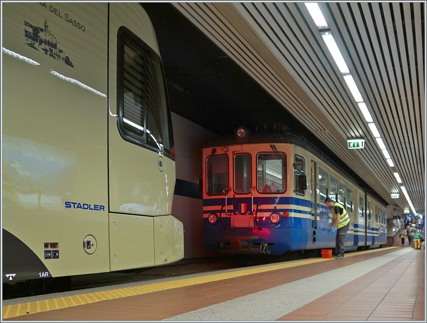 Gleich hinter dem neuen FART ABe 6/6 35  Verbania  steht der SSIF ABe 6/6 (UIC 84 83 4660 035-6 I-SSIF) der als Regionalzug von Re gekommen, hier gereinigt wurde und im Laufe des Tages nach Re zurück fahren wird.