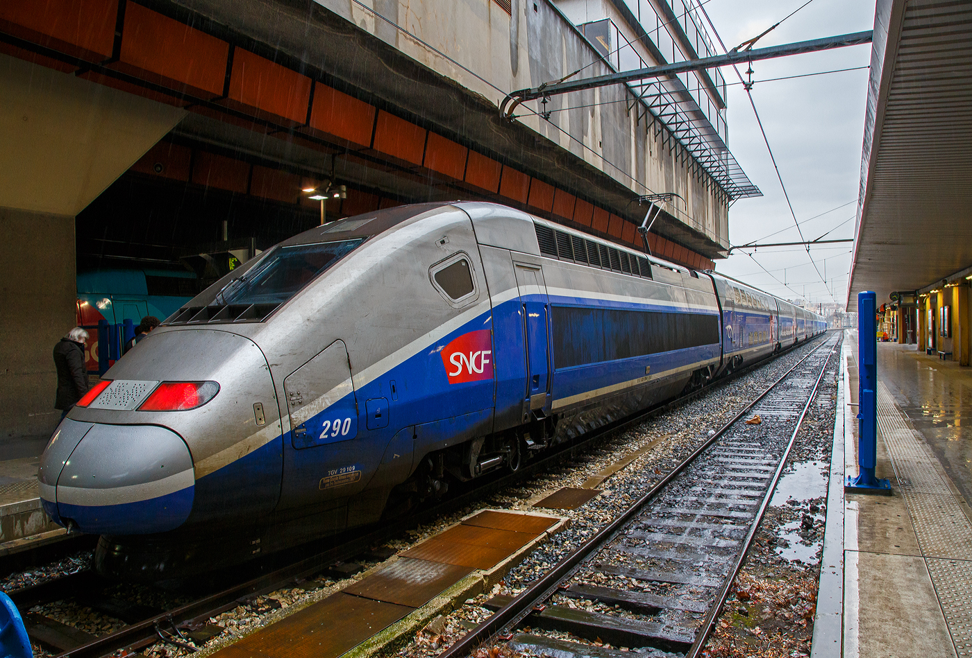 Das Bild entstand in Lyon Part Dieu, es wurde (gegen die "Regel") über alle Bahnsteige hinweg fotografiert, abers waren die drei Züge nicht aufs Bild zu bekommen.