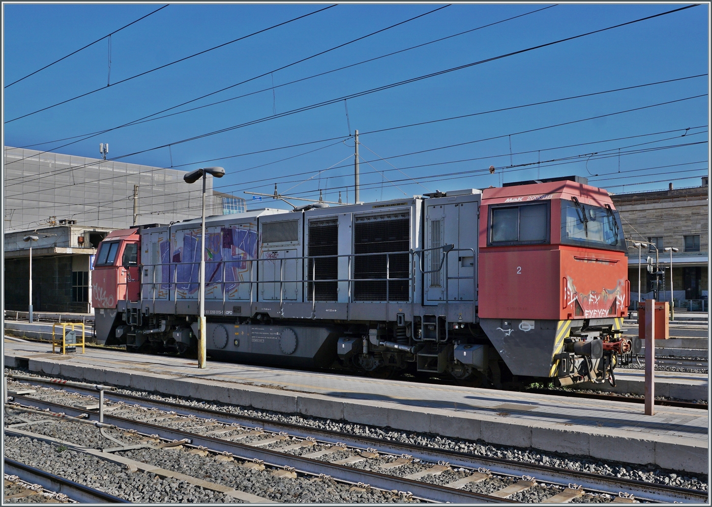 Die MaK G 2000 BB (eigentlich Vossloh G 2000-2 BB), die G 2000 18 ER (92 83 2200 017-5 I-DPO) der DP - Dinazzano Po S.p.A. (Reggio Emilia) ist am 23.07.2022 beim Bahnhof Milano Centrale abgestellt,