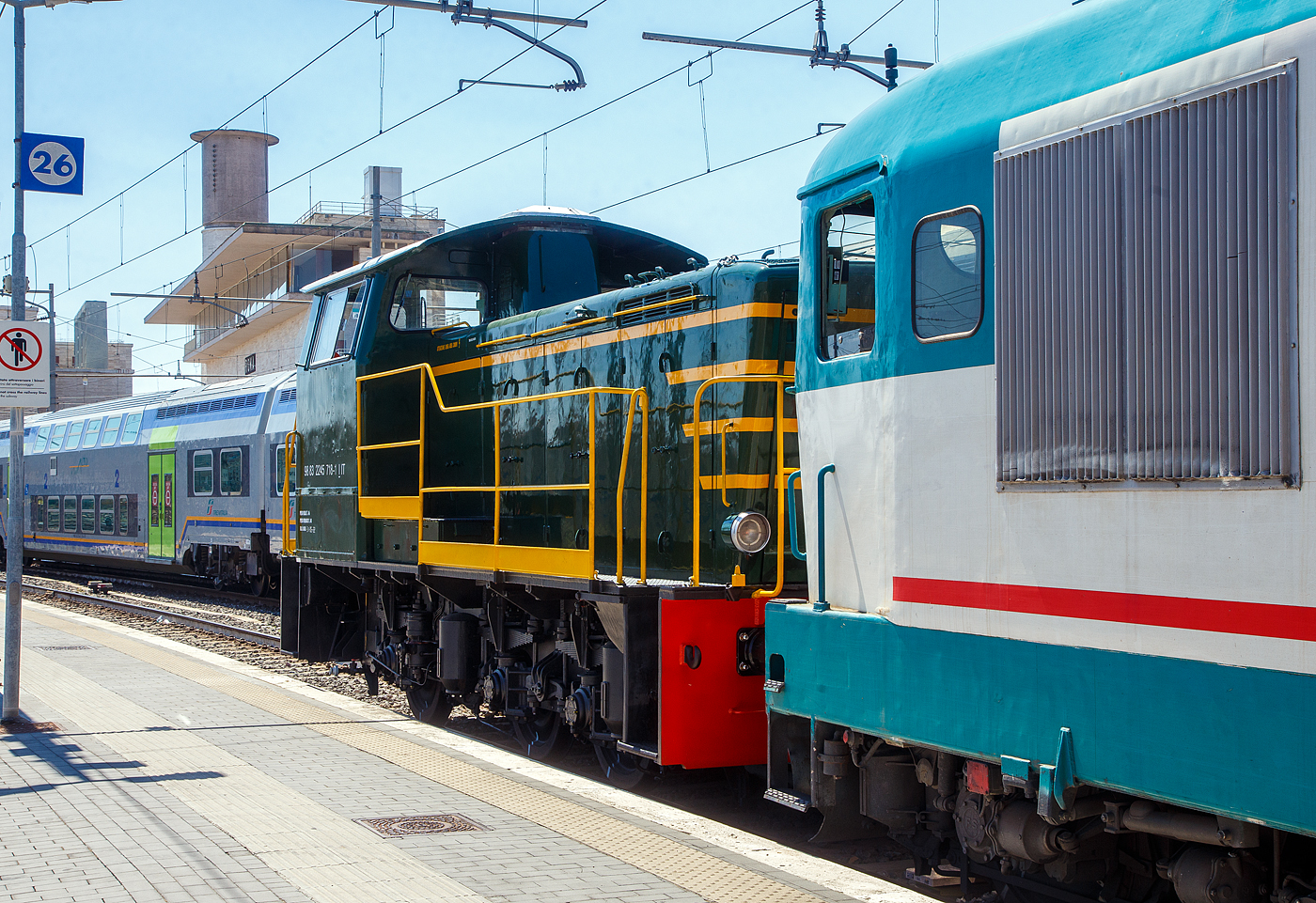 Ex FS zweiachsiger, großräumiger Schiebewandwagen 21 83 2459 356-3 I-TI, der Gattung Hbbillns, der Trenitalia, am 14.09.2017 im Bahnhof Tirano. Hier in Tirano werden die Wagen mit Mineralwasser beladen und gehen in die Welt.