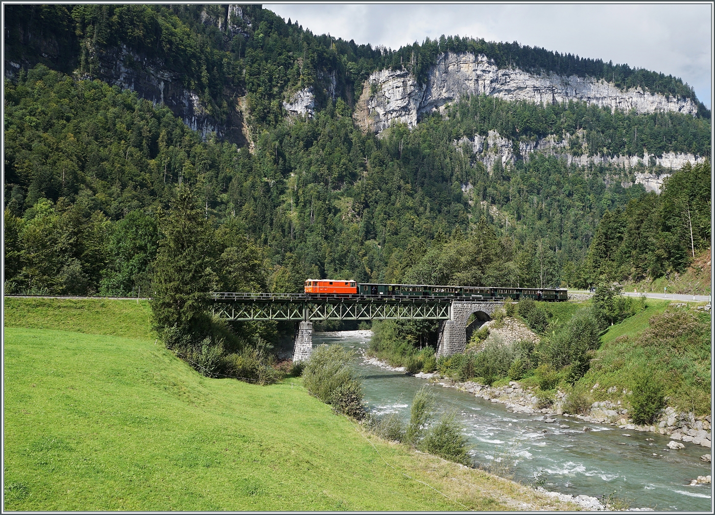 Unterwegs auf der Bregenzer Waldbahn: eine der der wohl schönsten Stellen: die Brücke über die Bregenzer Ach.