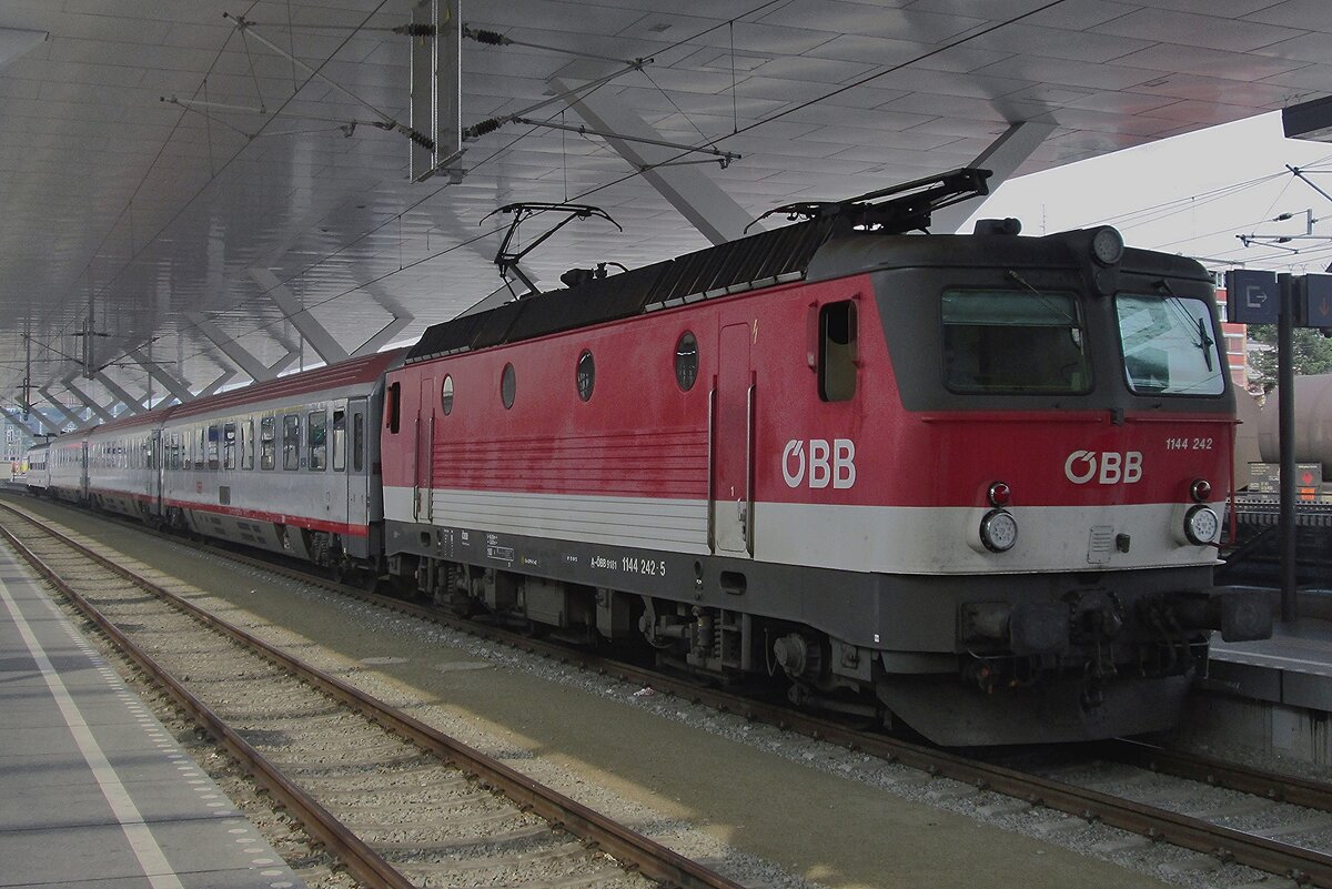ÖBB 1144 222 'PATRICK' steht am grauen 14.September 2024 in LIenz in Osttirol.