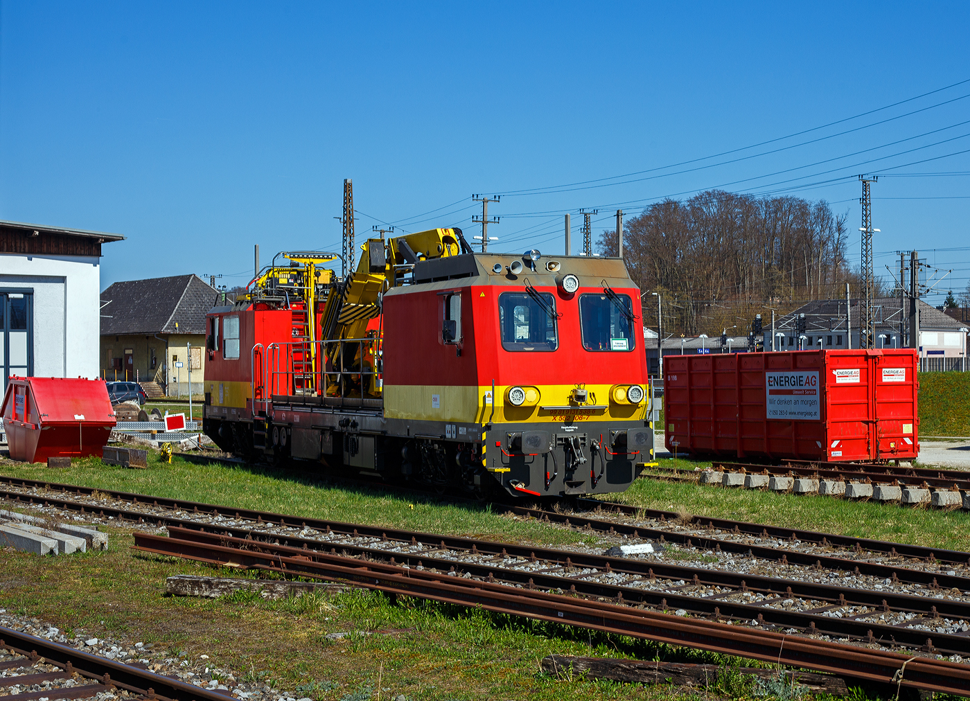 Der ÖBB Tunnelshuttle Lambach ein Tunnelrettungszug älterer Bauart ist am 14 Januar 2025 beim Bahnhof Lambach abgestellt.