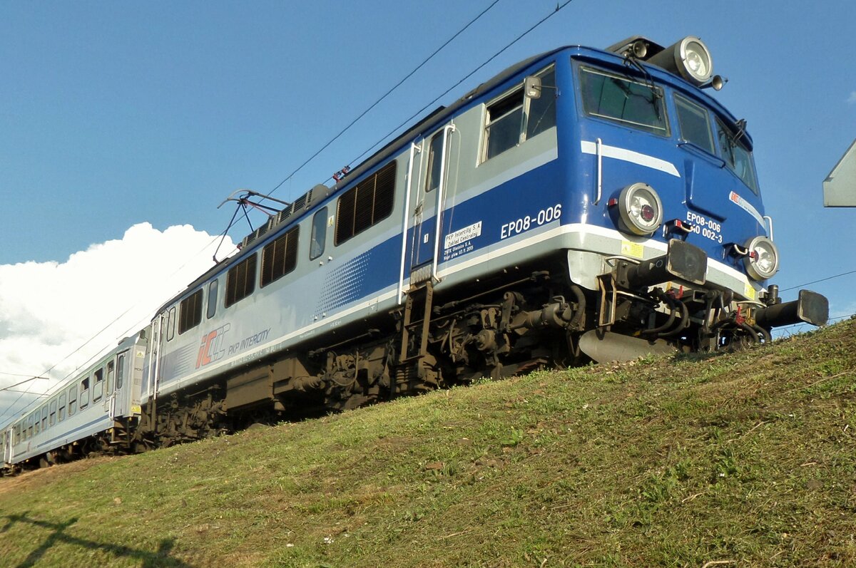 Orange EP08-001 verlässt Szczecin Glowny am 22 Augustus 2021.