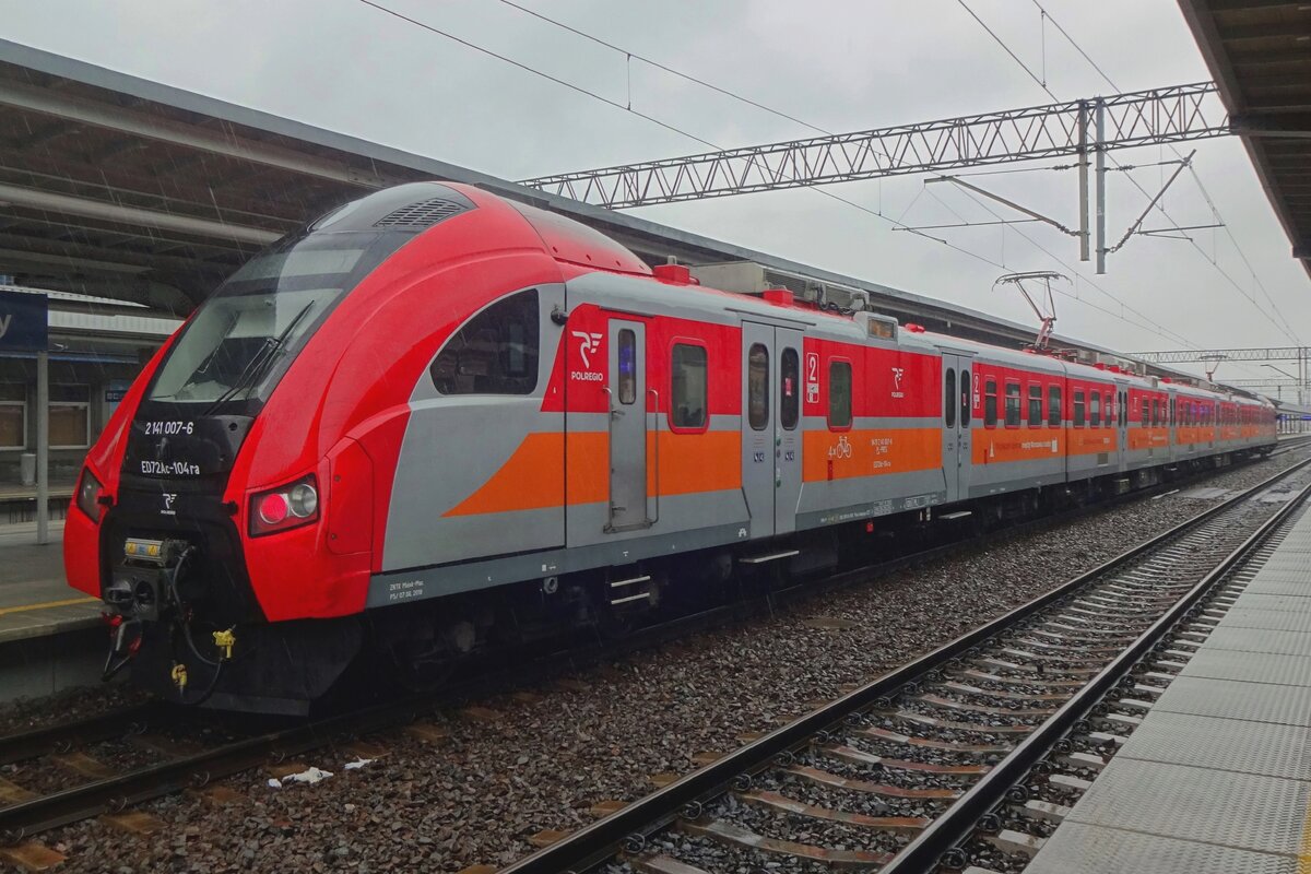 Der EN 57 2052 ra/s/rb / (94 51 2 122 850-2 PL-PREG / 94 51 2 122 851-0 PL-PREG / 94 51 2 122 852-8 PL-PREG) ein modernisierter Triebzug vom Typ Pafawag 5B/6B der POLREGIO (Przewozy Regionalne Sp. z o.o.), ex EN57- 1249, erreicht am 24 Juni 2017 als R87482 nun bald den Hauptbahnhof Posen (Poznań Główny).
