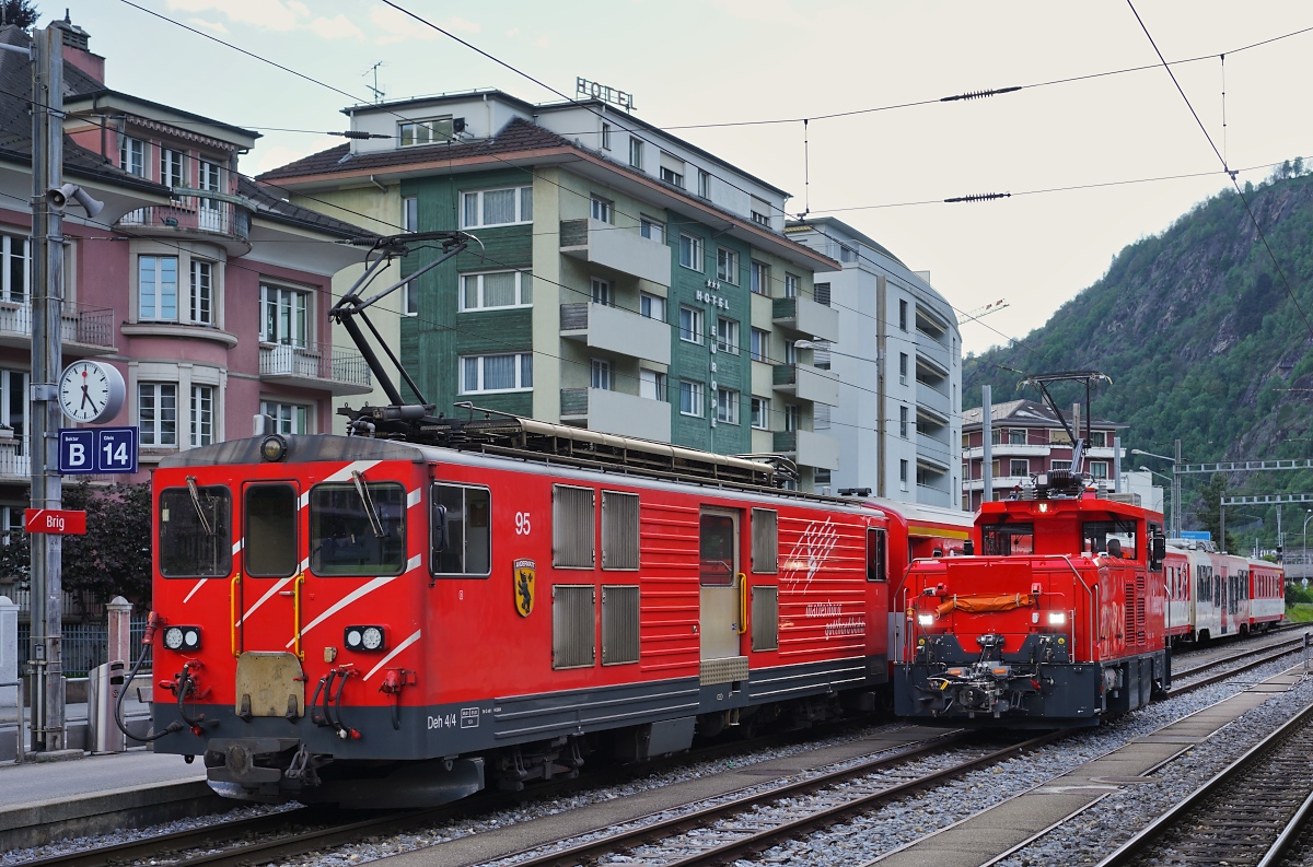 Deh 4/4 II 95 und Tea 2/2 802 am 11.05.2024 im Brig
