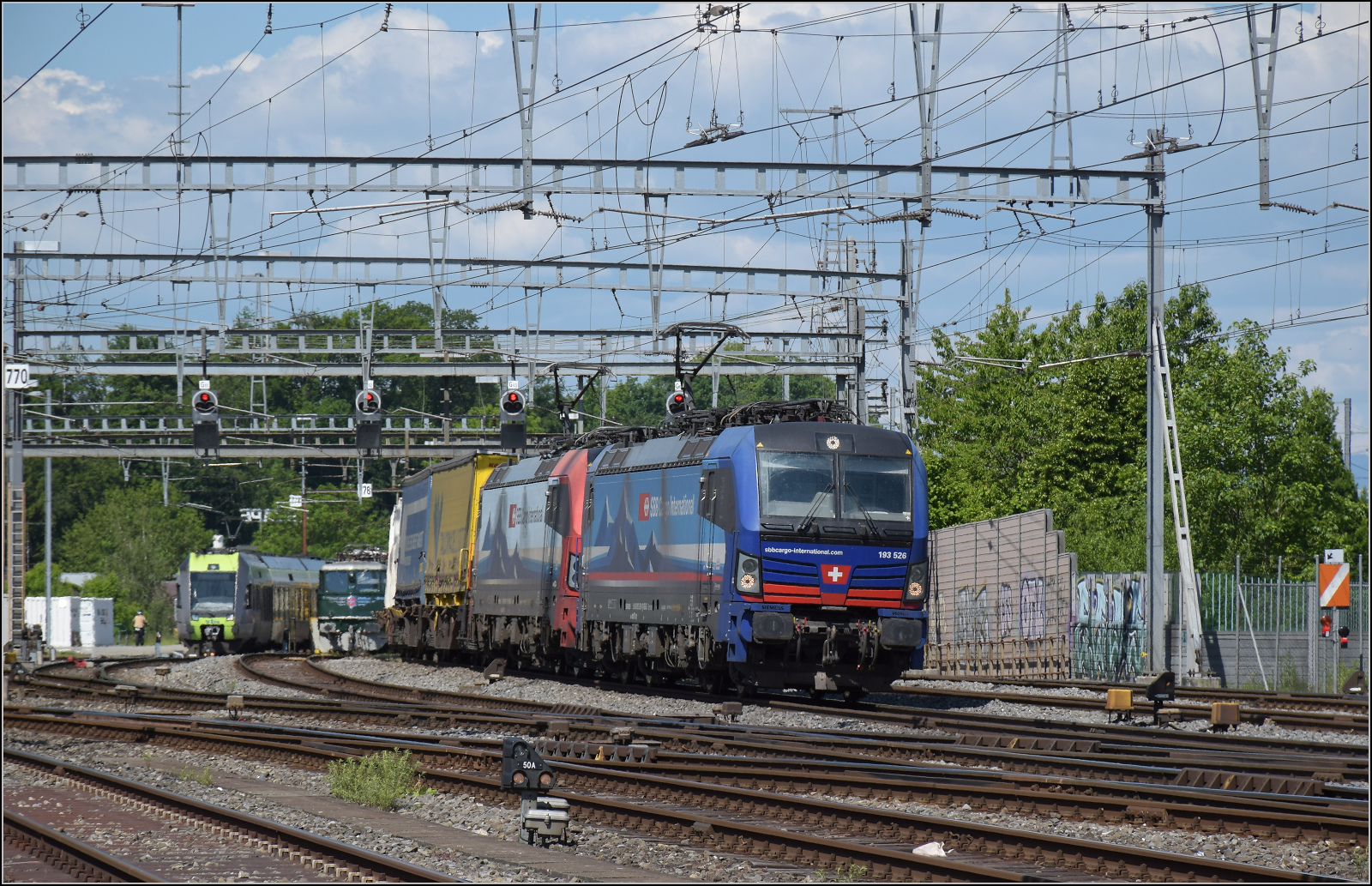 E 3/3 853 der Jura-Simplon und Ed 3/3 3 'Langnau' der Emmentalbahn rangieren im Bahnhof Burgdorf den Sonderzug in die Abstellgruppe. Mai 2025.