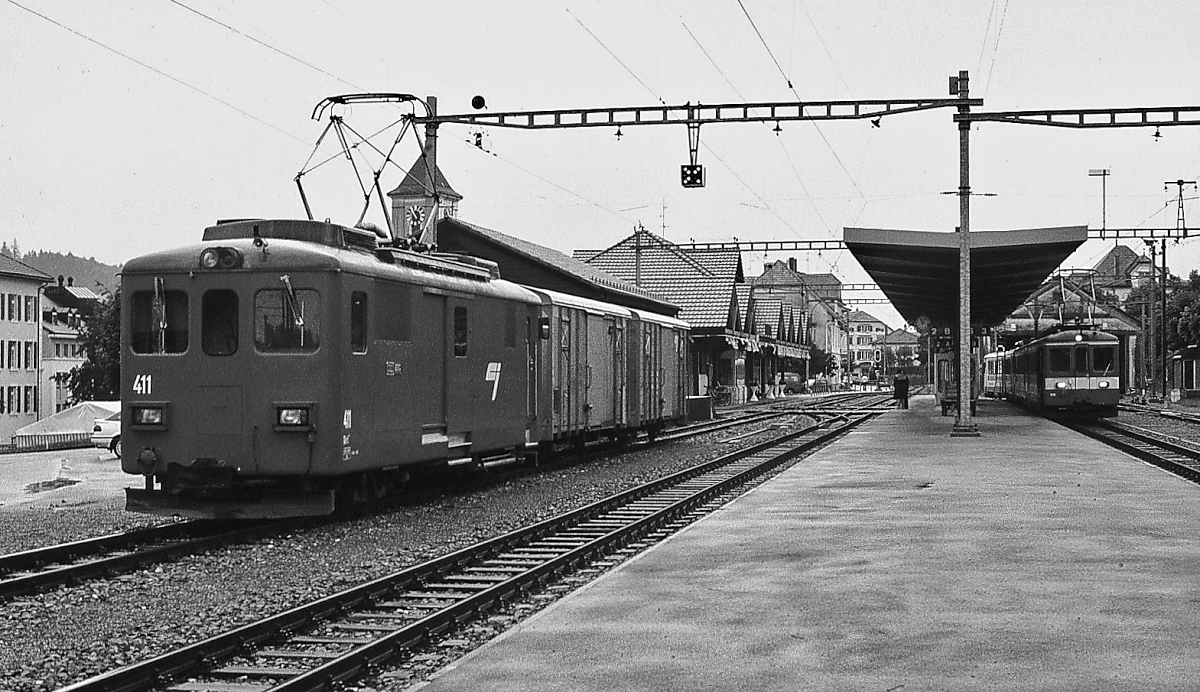 Nur halber Durchblick ins Depot von Saignelégier. Das Fahrzeug im Inneren konnte ich leider nicht identifizieren. Februar 2023.