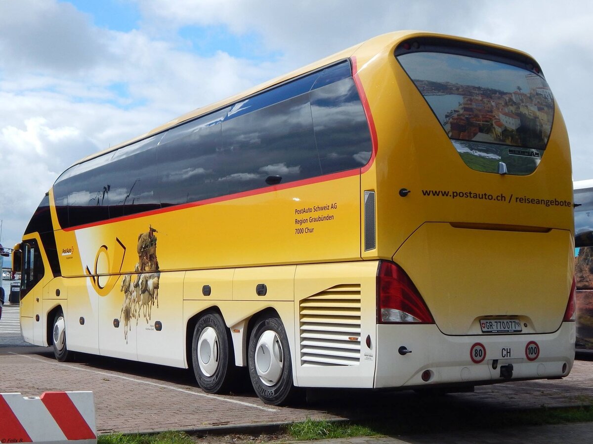 Neoplan Starliner von Postauto aus der Schweiz im Stadthafen Sassnitz.