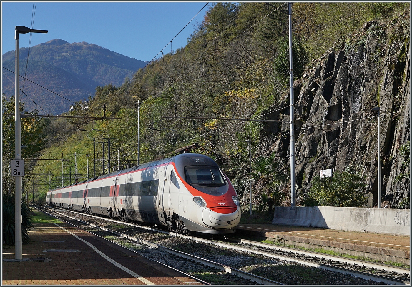 Ein kleines Detail sein noch angemerkt: Da der Zug auf Gleis 3 ankommt und dort beim Aussteigen fotografiert wurde, kann man geradewegs durch die 169 Meter langen Gallerie di Iselle das Portal des Simplontunnels (19803/19823m Länge) erkennen!