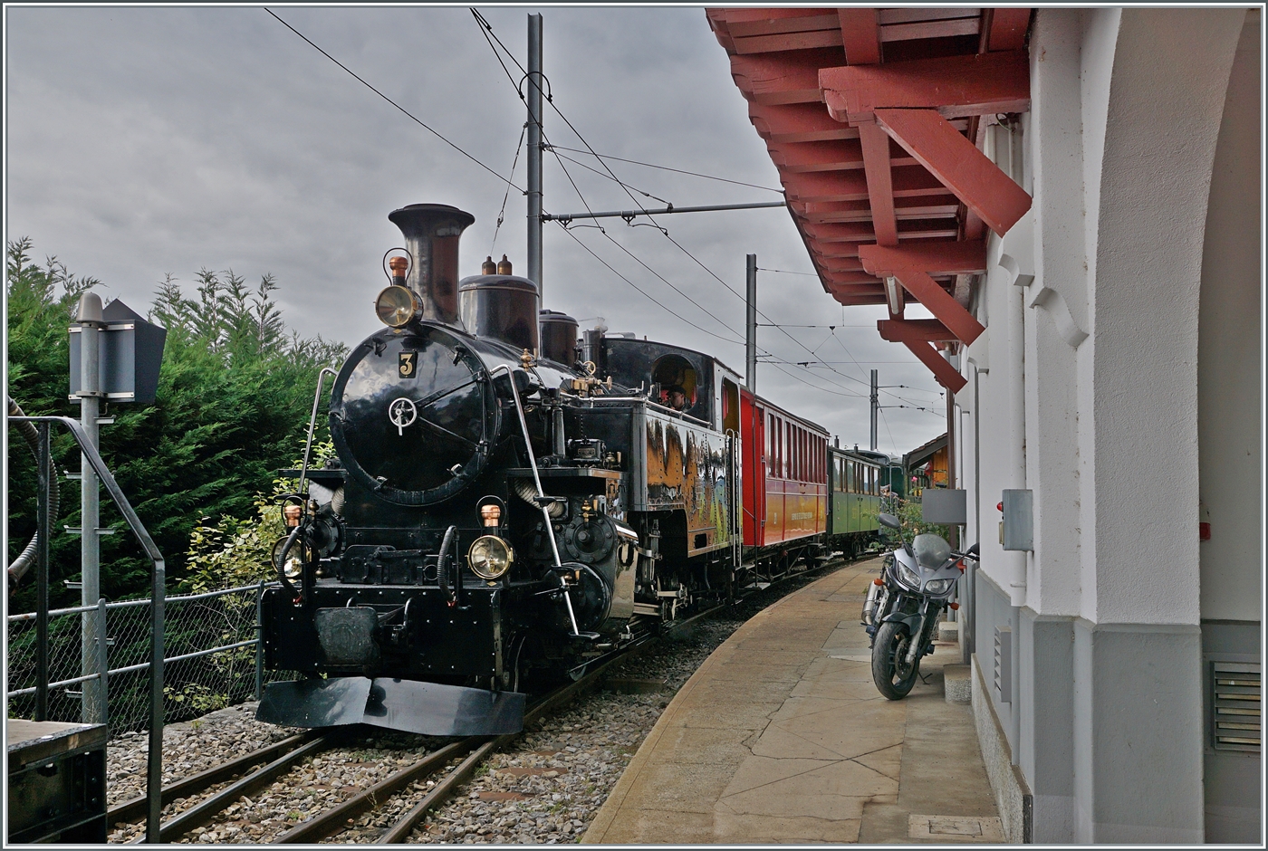 Die BFD HG 3/4 N° 3 der Blonay Chamby Bahn wartet in Blonay auf die Abfahrt nach Chamby.