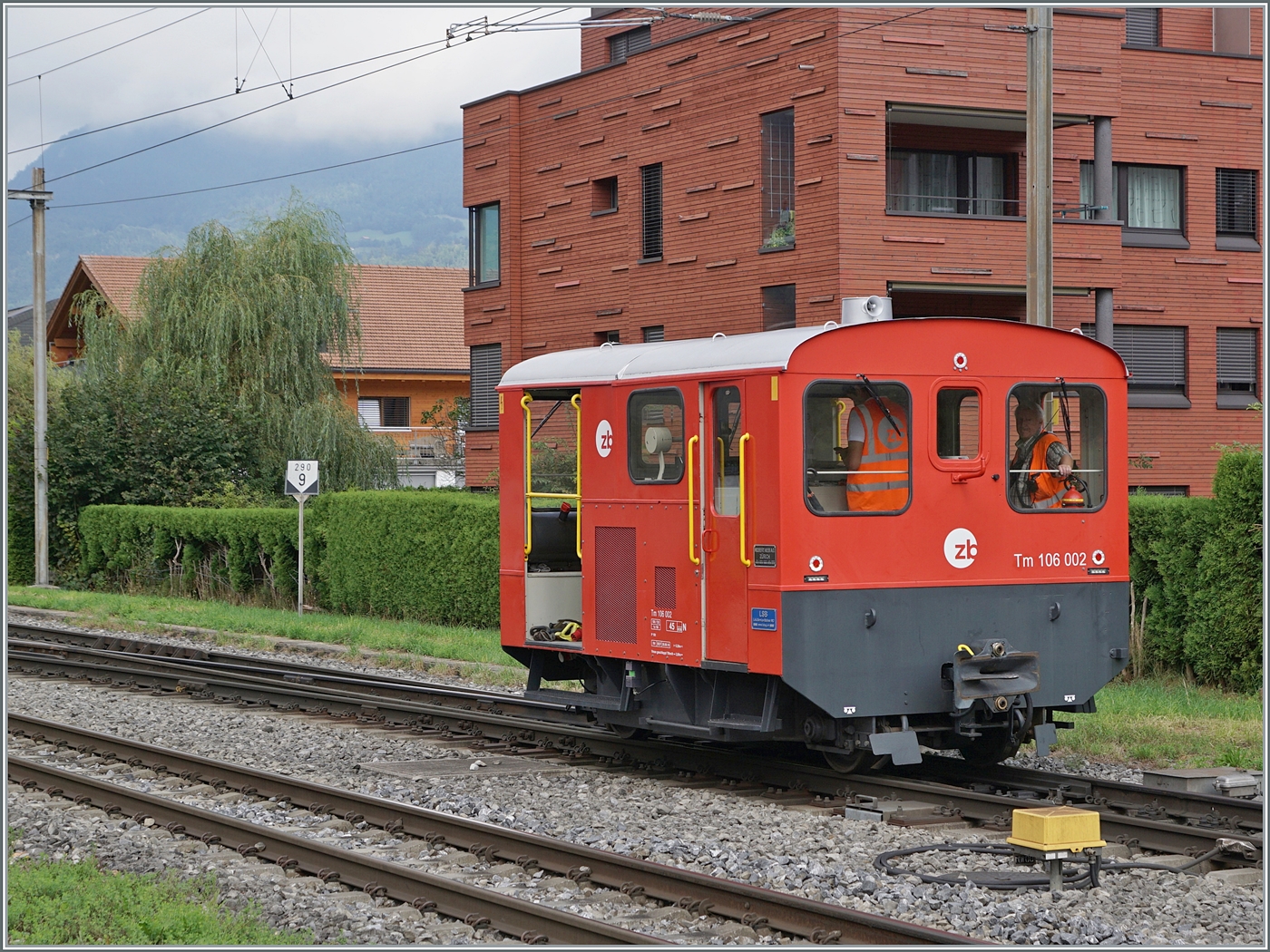 Der von der Brünigbahn beschaffte heutige Tm 106 002 kann seine Ähnlichkeit mit dem normalspurigen Tm der SBB kaum verbergen. Nachdem der Tm 106 002 den Ta 2/2 N° 3 "Trudy" auf Gleis 1 Abgestellt hat, dieselt der Tm 106 002 wieder in Depotareal zurück; allem Anschein nach ist er nicht würdig genug, an der Fahrzeugschau teilzunehmen. 23. August 2025