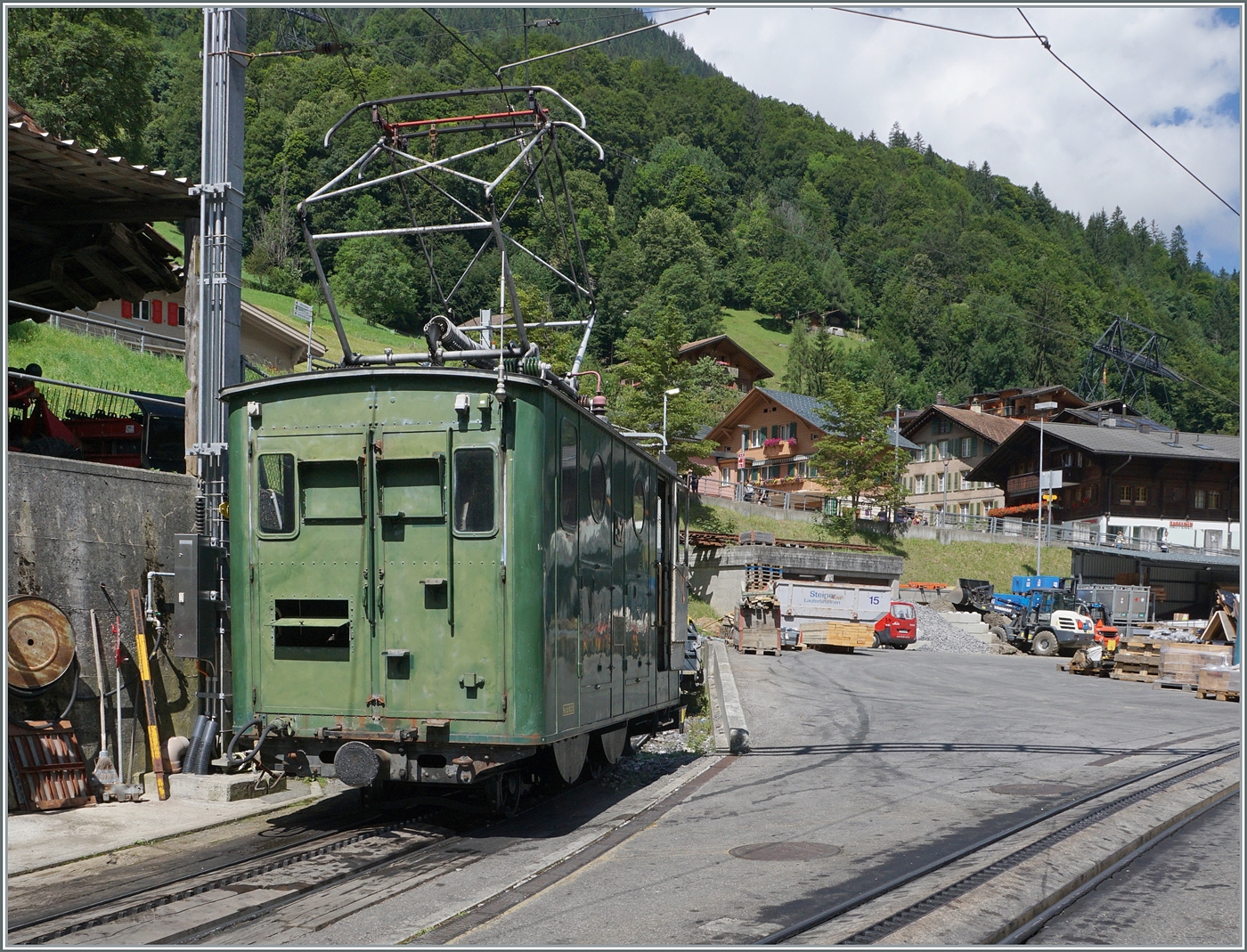 Die eher wenig attraktive Rückseite der WAB He 2/2 56. Das die He 2/2 ihr Züge Bergwärts immer schob, ist diese Ansicht eher weniger oft zu sehen. Das Bild entstand in Lauterbrunnen. 23. Juli 2024