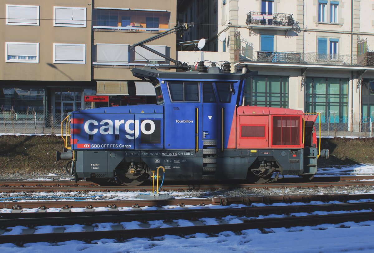 SBBC 923 021 steht am 31.Dezember 2024 ins sonnnigen Fribourg.