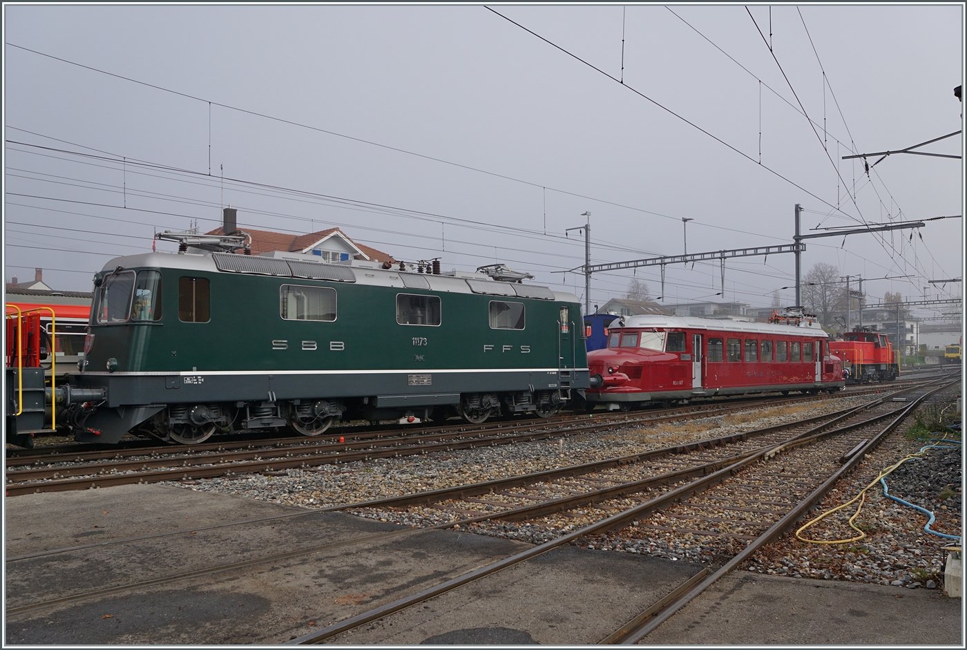 In Balsthal zeigen sich zwei SBB Klassiker die nach ihrer Dienstzeit bei der SBB eine neue Heimat gefunden haben: die Re 4/4 II 11173 der DSF Depot und Schienenfahrzeuge Koblenz und der "Rote PFeil" RCe 2/4 607 der OeBB. 8. November 2025