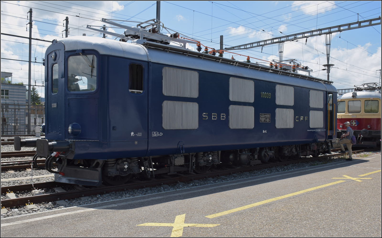 Re 4/4 I 10009 ist inzwischen sauber aufgearbeitet und bekam den originalen blauen Anstrich vom Verein Pacific 01 202 spendiert. Das macht definitiv was her und man wundert sich, warum in der Schweiz die Schnellzugloks später doch in tannengrün lackiert wurden. Konolfingen, Mai 2025.