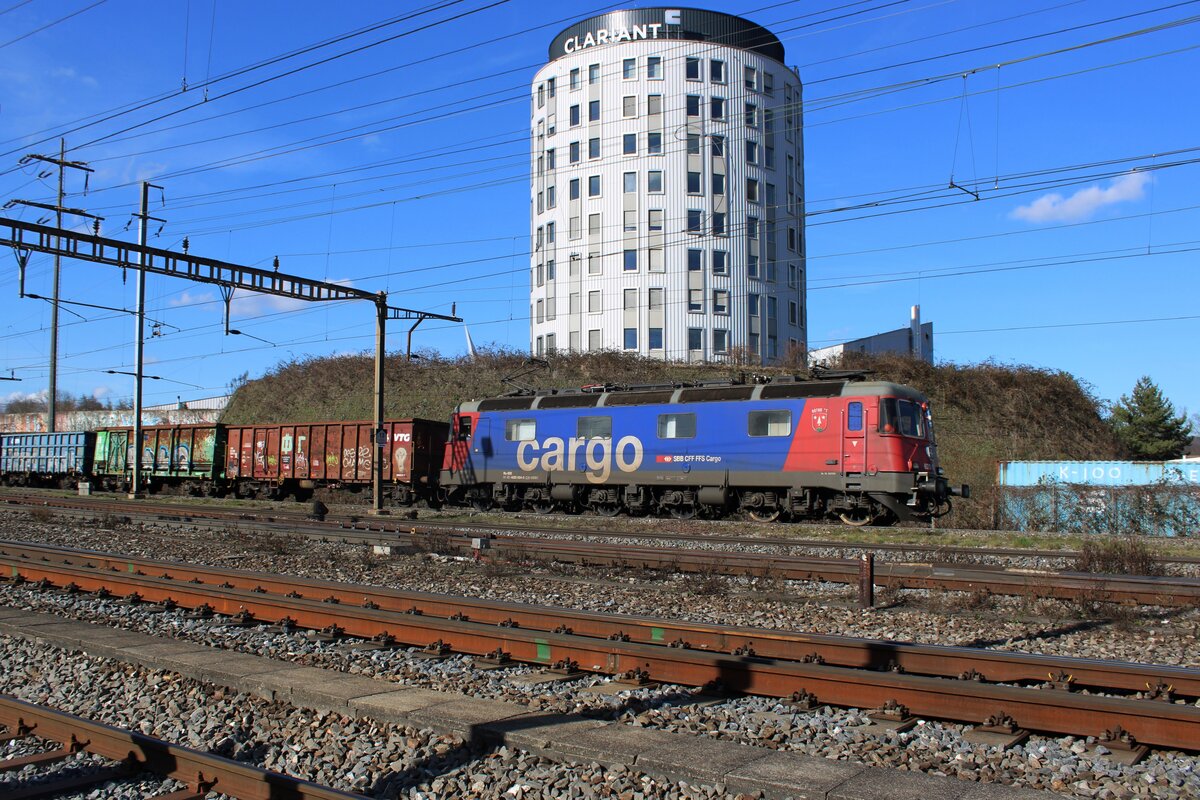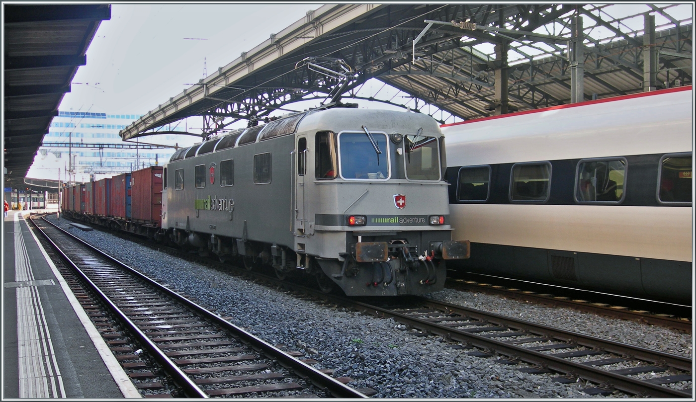 Die SBB Re 6/6 116665 (UIC 91 85 4620 065-3 CH-SBBC) ist mit einem Güterzug in Richtung Wallis beim Château de Chillon kurz vor Villeneuve unterwegs.