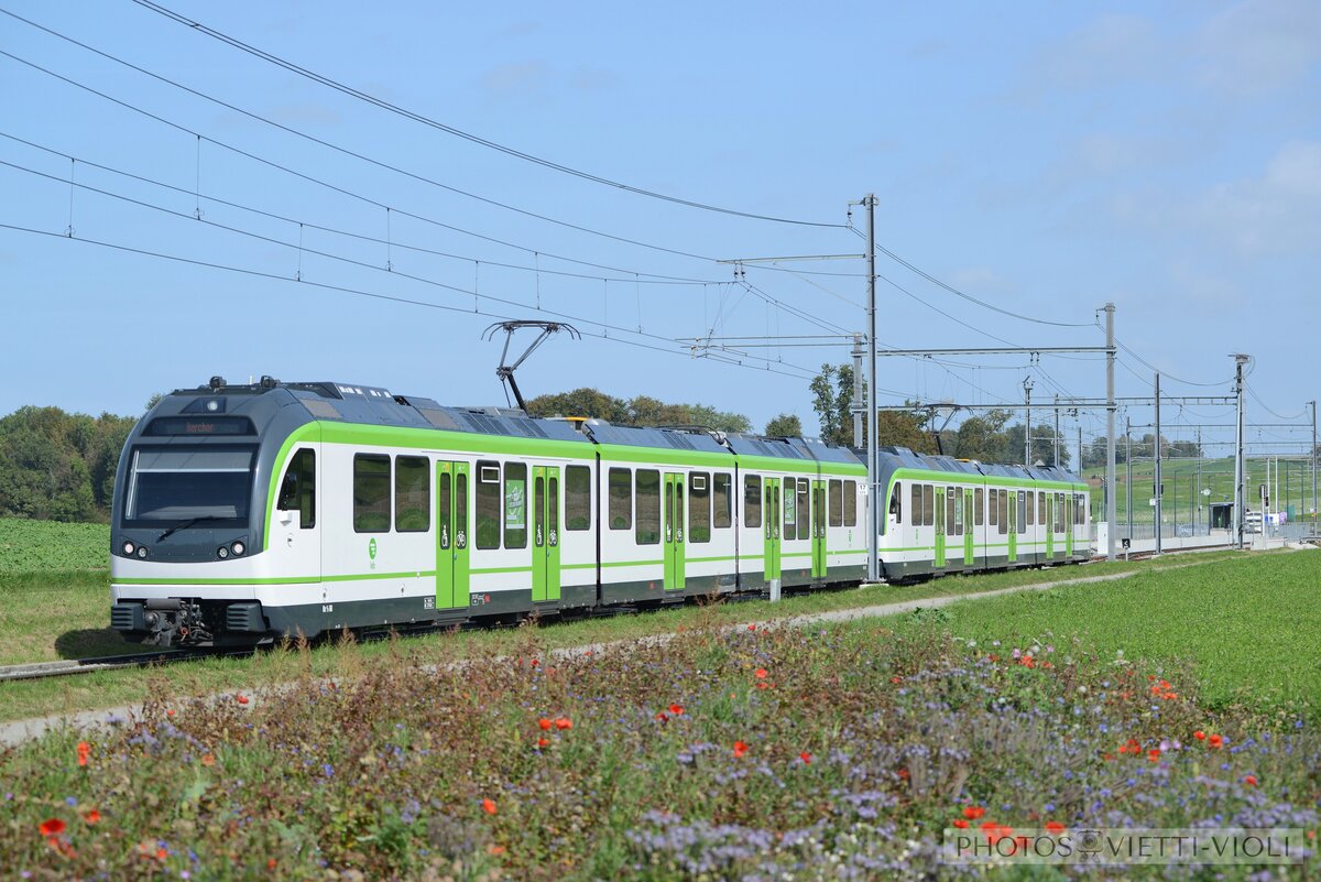 Obwohl Steuer- und Triebwagen heist der Zug, eine Einheit bildend, Be 4/8 N° 35 "Romanel". Lausanne-Flon, den 6. Nov. 2013