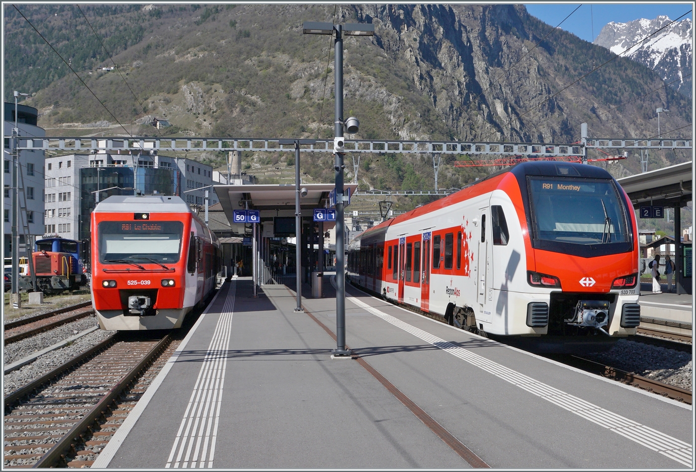 Der MC TMR BDeh 4/8 21 rangiert in Martigny.