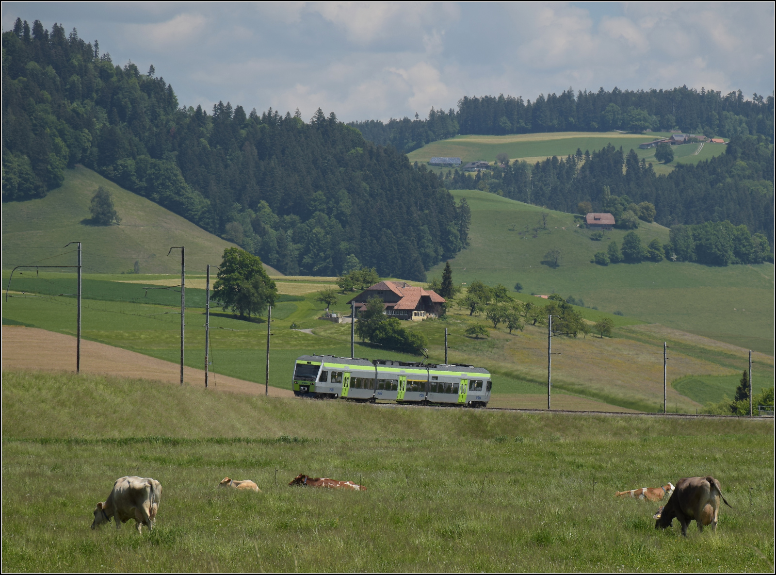Der TMR RegionAlps RABe 525 041 (UIC 94 85 7525 041-0 CH-RA) wartet in Orsières auf die Rückfahrt nach Sembrancher. Schienbar zu Schulungzwekcen ist dahinter ein weiter Region Alpes RABe 525 im Einsatz.