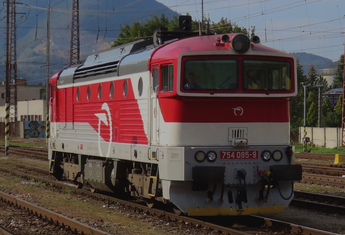 Lok 754 003-2, (SK-ZSSK 92 56 1 754 003-2), steht mit ihrem Zug im Bahnhof von Bratislava. 05.06.2023