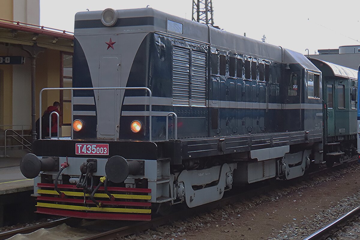 T435 003 rangiert am 27 September 2025 in Benesov u Prahy während das Spektakel STEAM56.