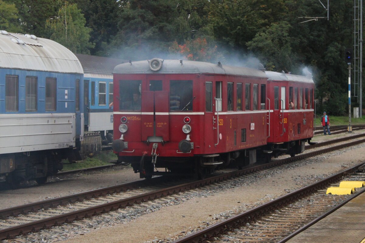 KmP (Kesselwagenzug mit Personenverkehr)? PmK (Personenzug mit Kesselwagenverkehr?). In jeden Fall schleppt Hurvinek M131-1513 ein Kesselwagen durch Luzna u Rakovnika als Witz während das Dampfwochenende, 11 Mai 2024.
