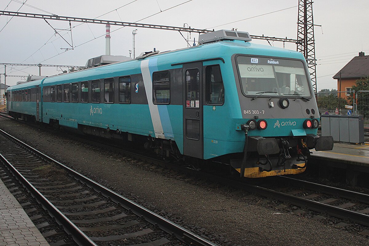 Am grauen 26 September 20-25 steht Arriva 845 303 in Kolín mit ein R22 nach Nymburk.